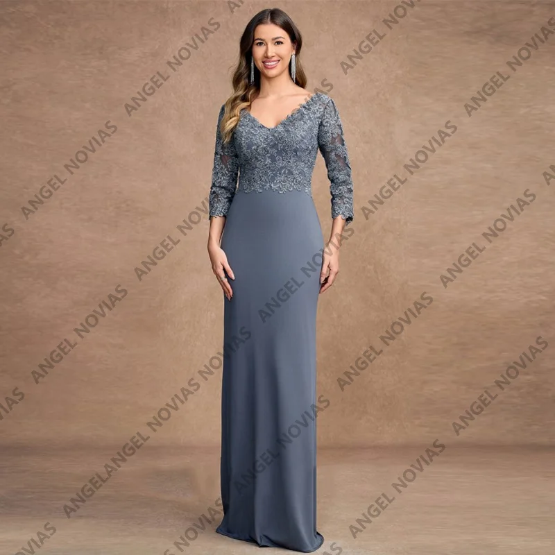 Stormy Blue Sheath Straight Mother Of Bride Dresses V Neckline Chiffon Party Gowns Custom Summer Mere Formelle Robes