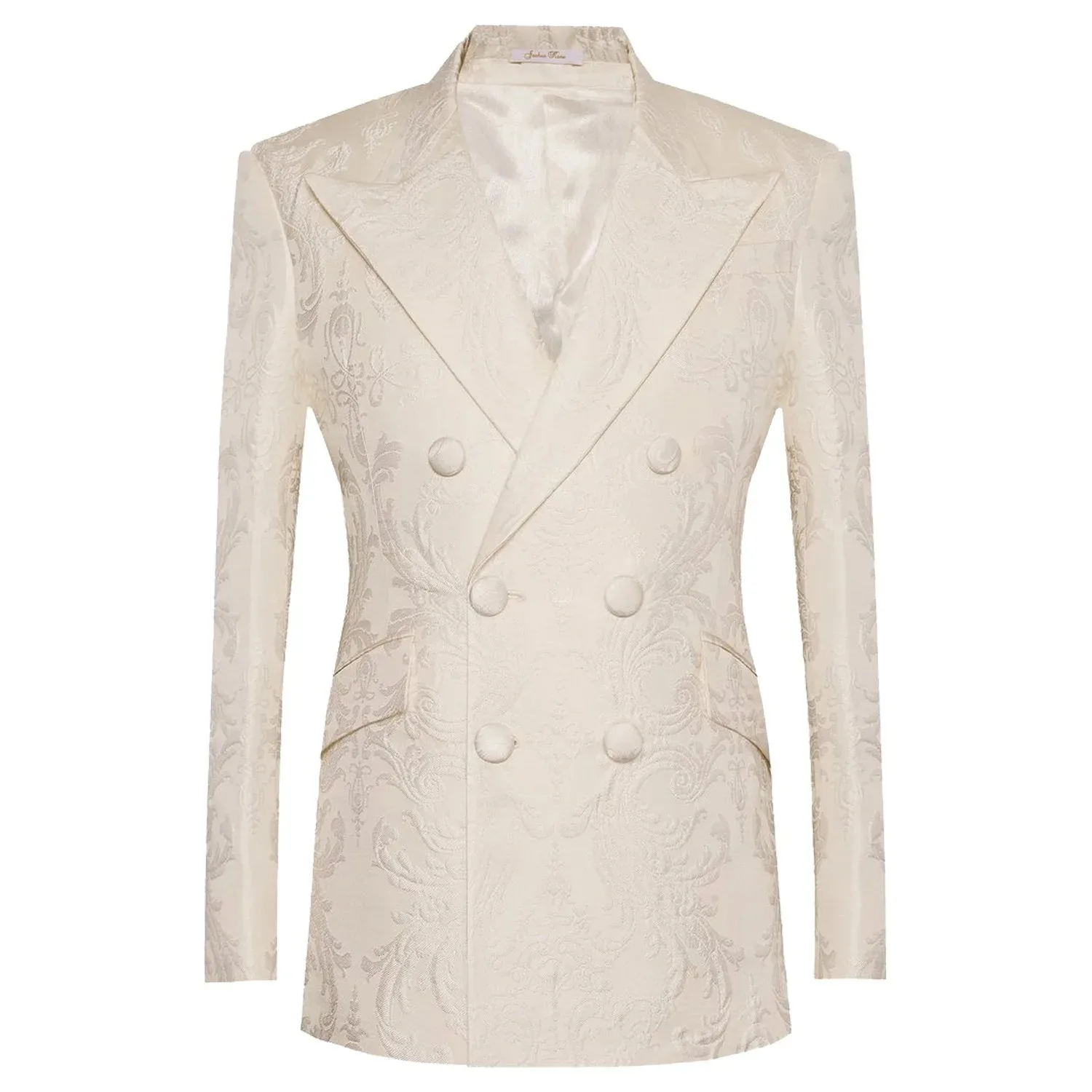 Stylish Wedding Suits for Man Double Breasted Peak Lepal Jacquard Fabrics 2Pieces Blazer Pants Formal Buainess Office Customized