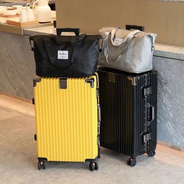 Suitcases Top Quality Aluminum sash Travel Lage Business Trolley Suitcase Bag Spinner Boarding Carry On Rolg 20/24/28 Inch