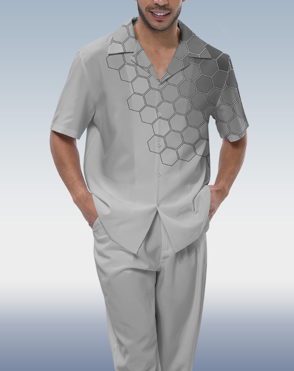 Suitmens Geometric Short Sleeve Walking Shirt for Men
