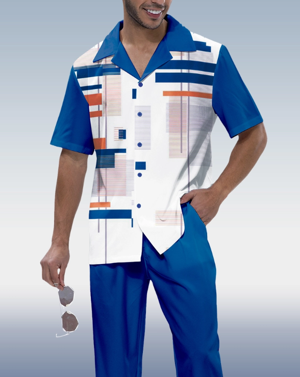 Suitmens Men’s Blue Print Short Sleeve Walking Suit