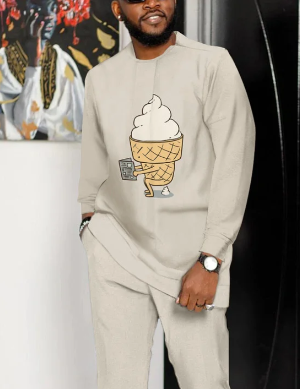 Suitmens Men’s Fun Ice Cream Print Long Sleeve Athletic Walking Suit -256
