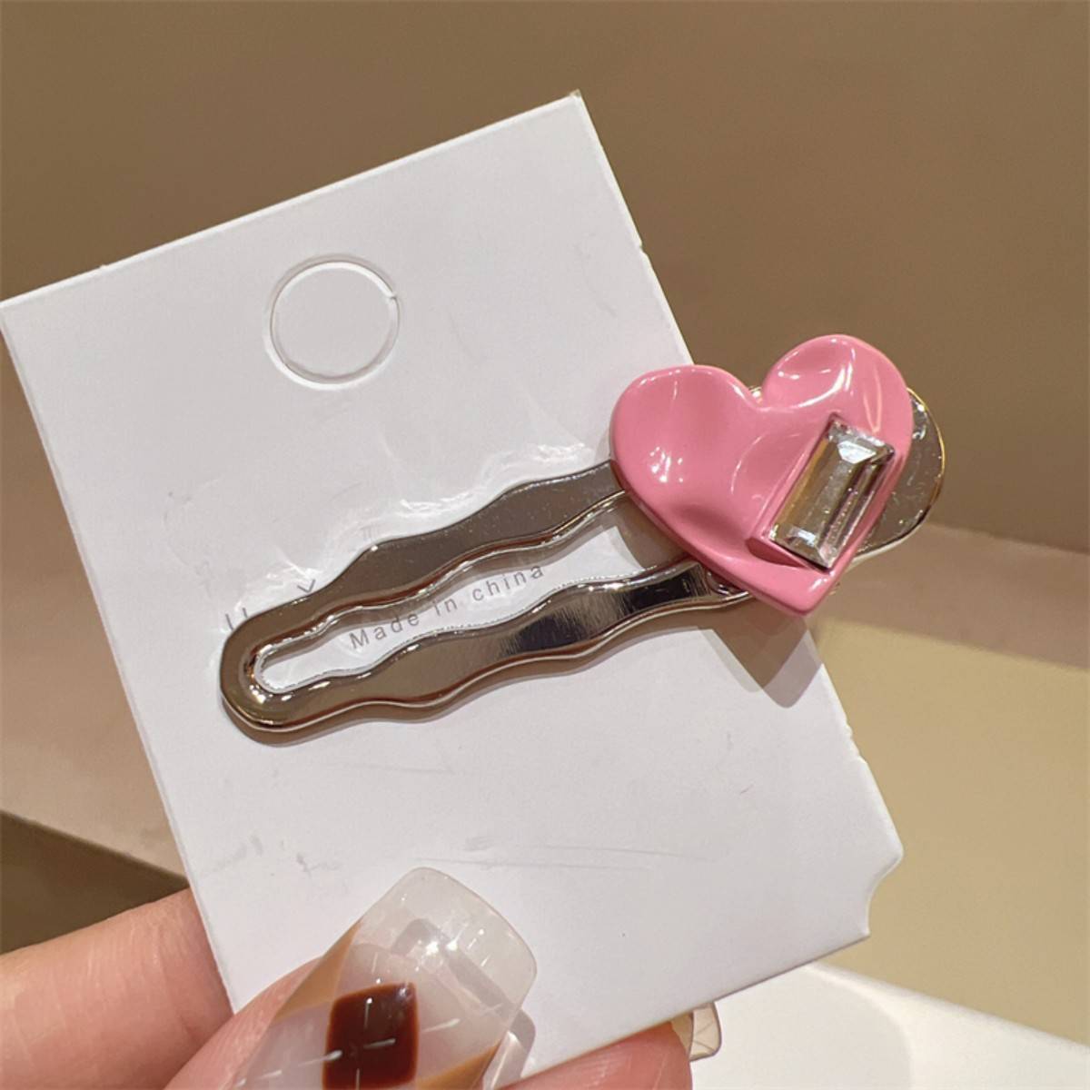 Sweet and cool style metal heart big rhinestone duckbill clip simple bright silver sweet wavy edge clip alloy hair clip hair accessories