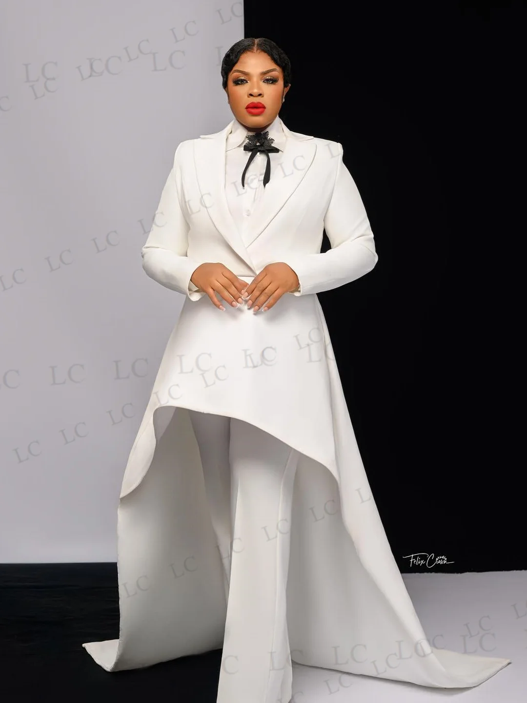 Tailored White Design Women Suits 2 Pieces Buttons Long Blazer Cape Pants Peaked Lapel Plus Size Custom Made Mother Of The Bride