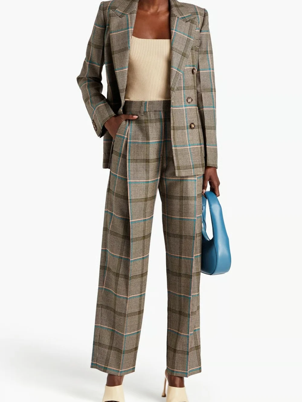 Tailored Women Suits Double Breasted Notch Lapel Grid Stripe Business Casual Women Blazer High Quality 2 Pieces Sets Customized