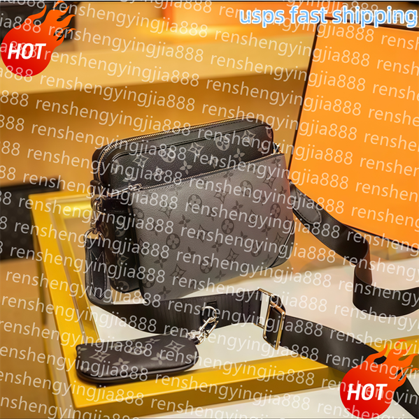 TOP Handbags Women Men Leather TRIO Messenger Bags Shoulder Make up Bag Designer Handbag Tote Man's bagA8