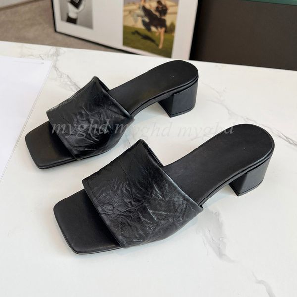 Top Quality Women's Slippers Wrinkled Leather Medium Heel Thick/Thin Heels EUR 35-42 26368