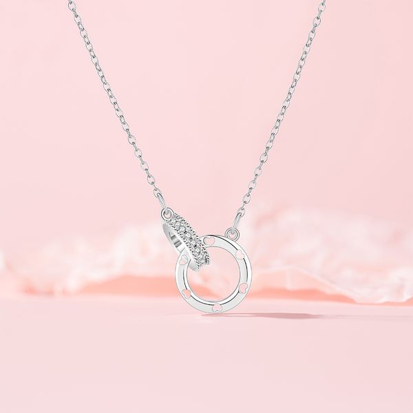 Trendy Love Symbol Hollow Out Necklace Featuring Dual Moebius Rings & Stainless Steel Chain