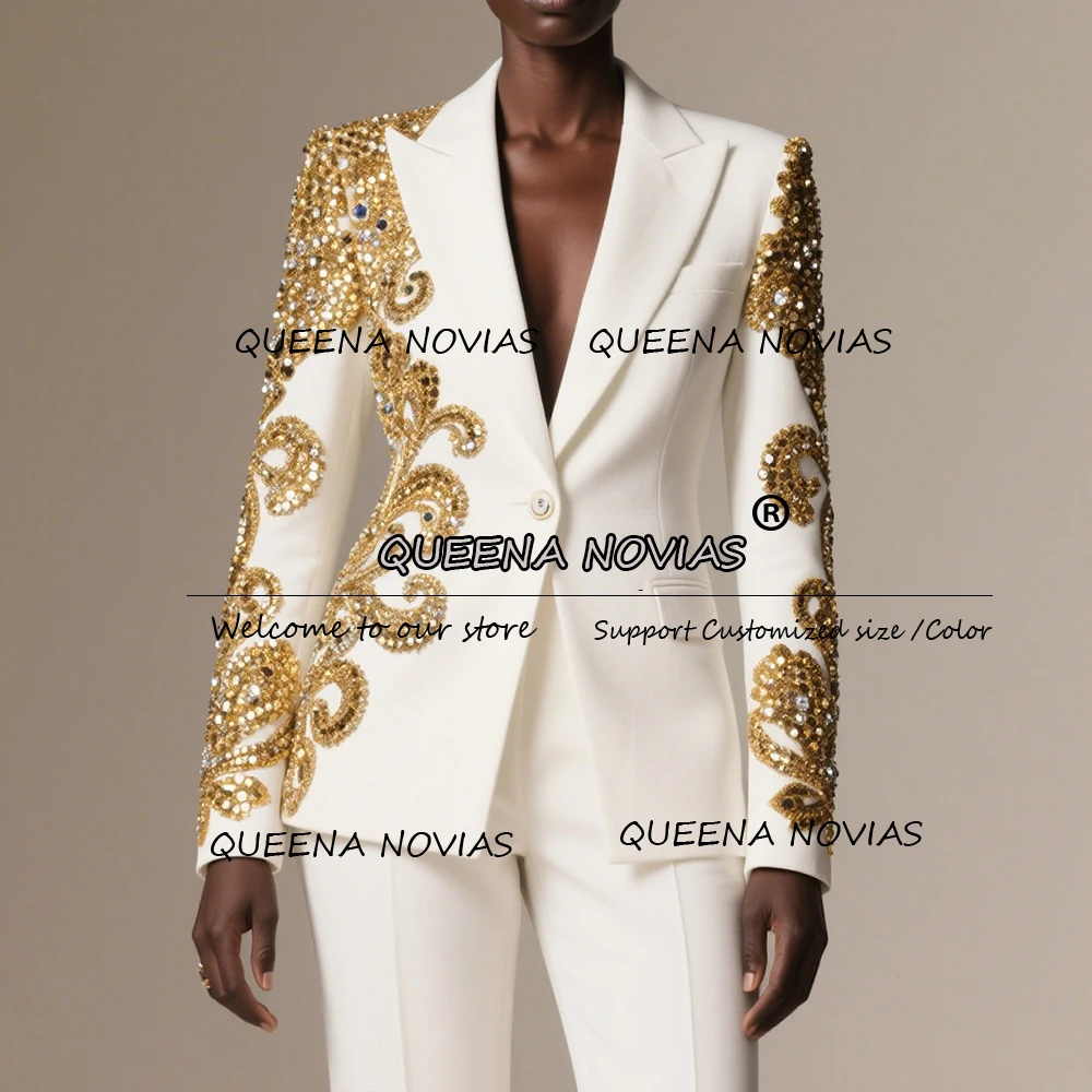Twinkling Gold Crystals Beaded Suits Women 2 Pieces Mother Of The Bride Dress For Wedding Guest Party Lady Blazers Customized
