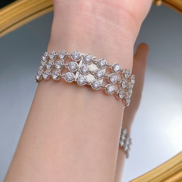 Versatile Fine-Toned Elegance: A High-Quality Solid-Silver Bracelet Adorned With Sparkling Gems