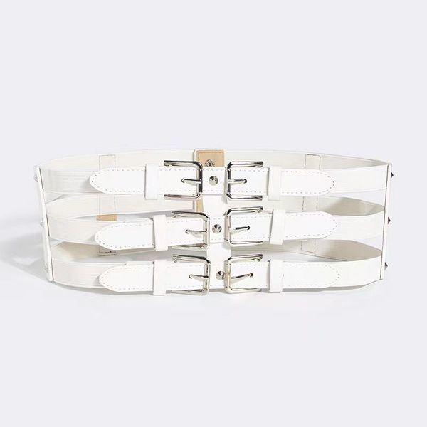 Versatile Style New Wide Elastic Belt Featuring a Hollow Girdle & Adjustable Three Rows of Buttons