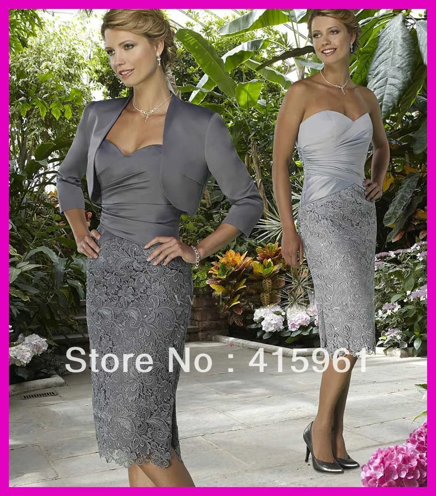 vestido de madrinha vestido longo Dark Grey Short Lace Sheath Mother of the Bride Dresses With Jacket 2025 vestidos de novia