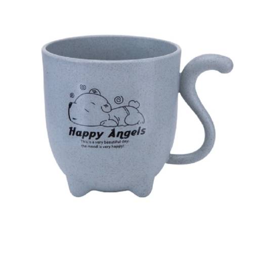 Wheat Straw Animal Cartoon Cat Tail Children’s Cup Cute Wind Creative Coffee Cup Milk Four-legged Cup(Light Blue)