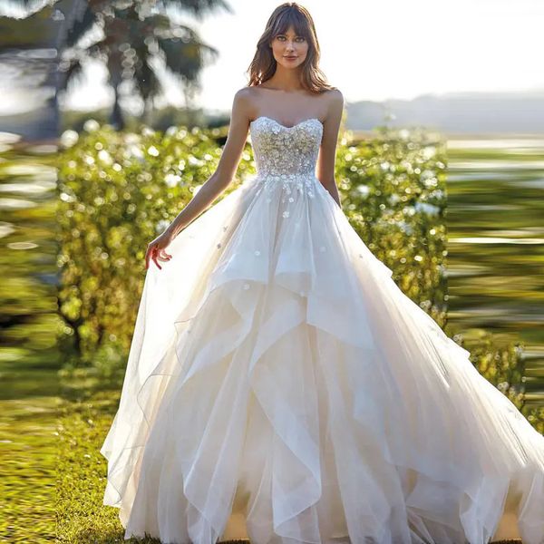White Sweetheart A-line Tulle Wedding Dress 2024 For Women New Strapless Lace Appliques Bride Backless Gowns Vestido De Noiva