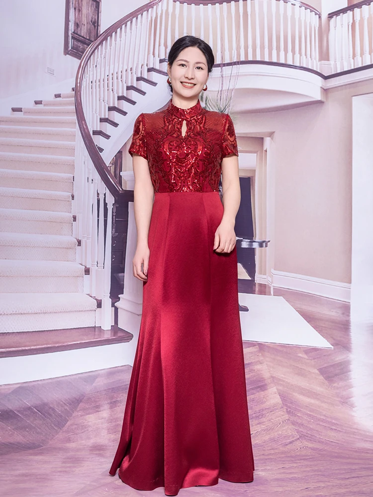 Item: Wine Red Mermaid Mother Of The Groom Dresses Vintage High Neck Floor-Length Long Mom Evening Gowns For Wedding Party