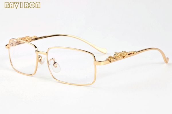 with box 2019 fashion sunglasses gold silver alloy metal leopard frame men women buffalo horn glasses clear lens sun glasses
