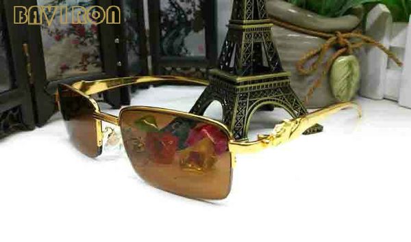 with box top quality mens fashion sunglasses leopard gold metal alloy frame mens sunglasses fashion black brown clear lens semi rimless