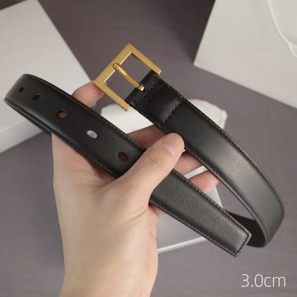 Women's Genuine Leather Belt 3cm Wide, Gold Buckle, Designer Style, Adjustable Length, Narrow Waistband for Casual & Formal Wear BFD2503042