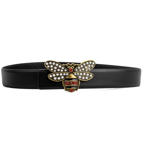 Womens Little Bee Cowhide Designer Belt for Woman Belt Fashion Smooth Buckle Belts Width 3.4cm Highly Quality Cowhide Black Brown Colors