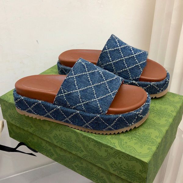 womens slipper embroider slide designer sandles girls Canvas covered platform sandal with dust bags beach sandale femme mid heel lady sandal slipper new l slider