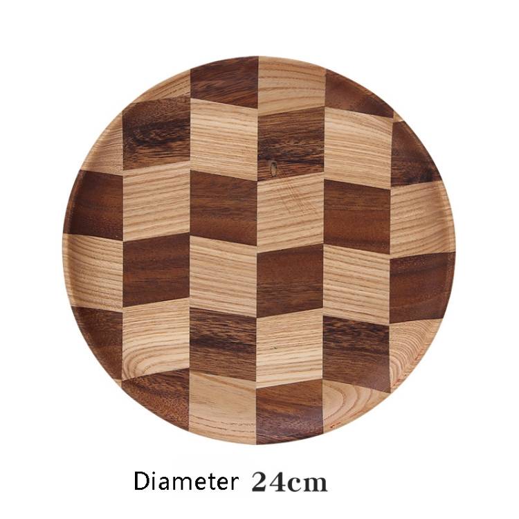 Wooden Tray Dinner Plate Household Fruit Cake Dessert Plate Wooden Dish Round 24cm