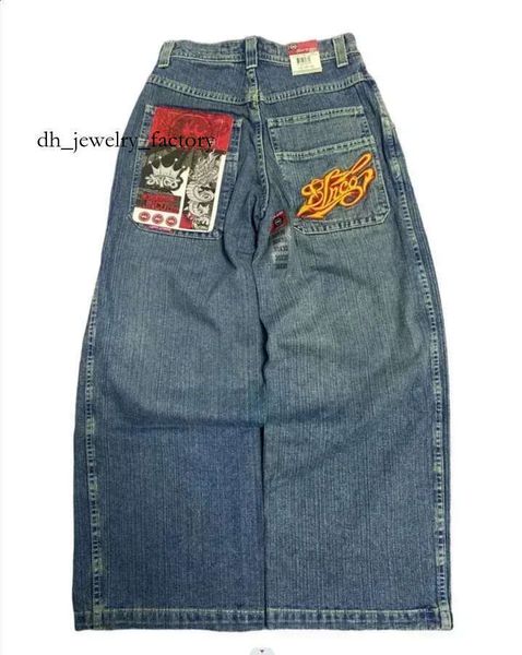 Y2K Harajuku Hip Hop bet Embroidered Vintage Bagged Jeans Denim Pants Mens Gothic High Waist Wide Trousers 4ce