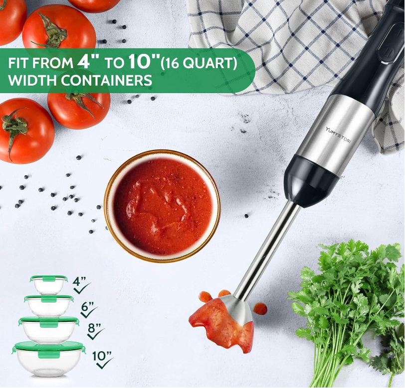 Yumystori Immersion Blender 7 in 1 Hand Blender Ice Crush 800W, 20 Speed Immersion Blender Handheld with Ice Crush Blade,Egg Whisk,Milk Frother,500ml